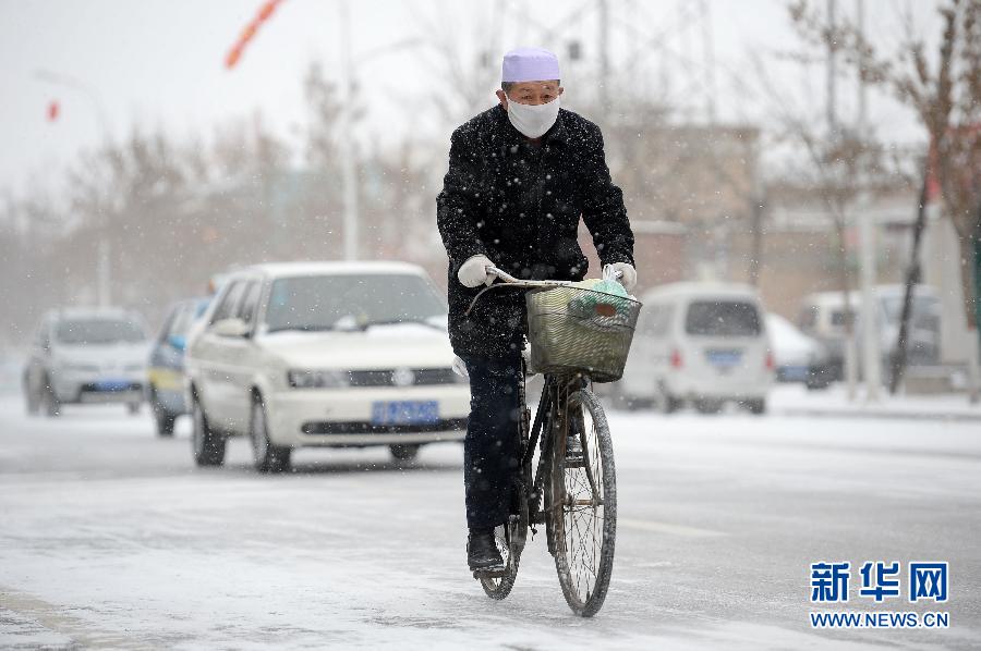 3月4日,在宁夏固原市,一位市民在雪中骑行。当日,宁夏固原市普降中到大雪,固原市气象台发布道路结冰黄色预警,福银高速李旺至沿川子段部分路段双向交通管制,交通部门提醒出行市民注意交通安全。新华社记者 王鹏 摄