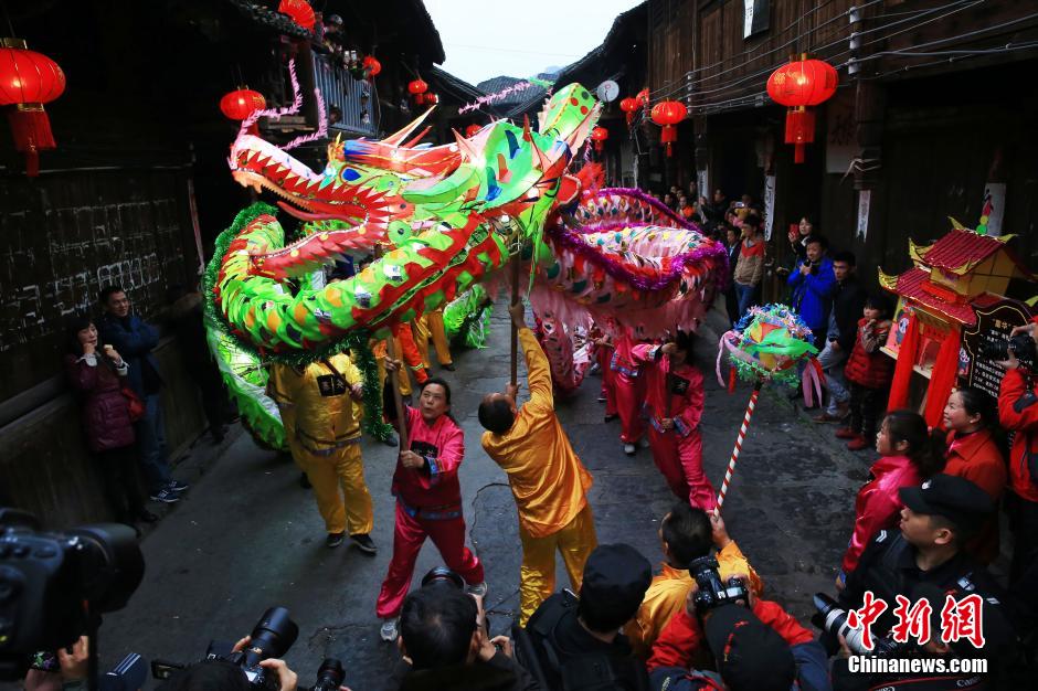 3月3日,寨英古镇的群众正在舞“滚龙”。