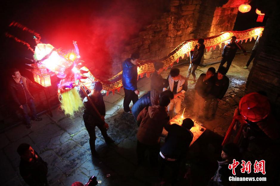 3月3日,寨英古镇的群众正在舞“滚龙”。