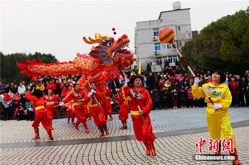 元宵将近,全国各地群众通过举行多种极具特色的民俗活动来欢度元宵,祝福新春。在浙江舟山,一支由舞龙、舞狮、腰鼓、灯笼、秧歌队等16个方队组成的民俗巡游队伍在浙江舟山进行全岛巡游。对舟山的老百姓来说,“舞龙”图的是热闹,更是吉利,不仅“舞”的好看,而且还寓意着来年风调雨顺,五谷丰登。姚峰 摄
