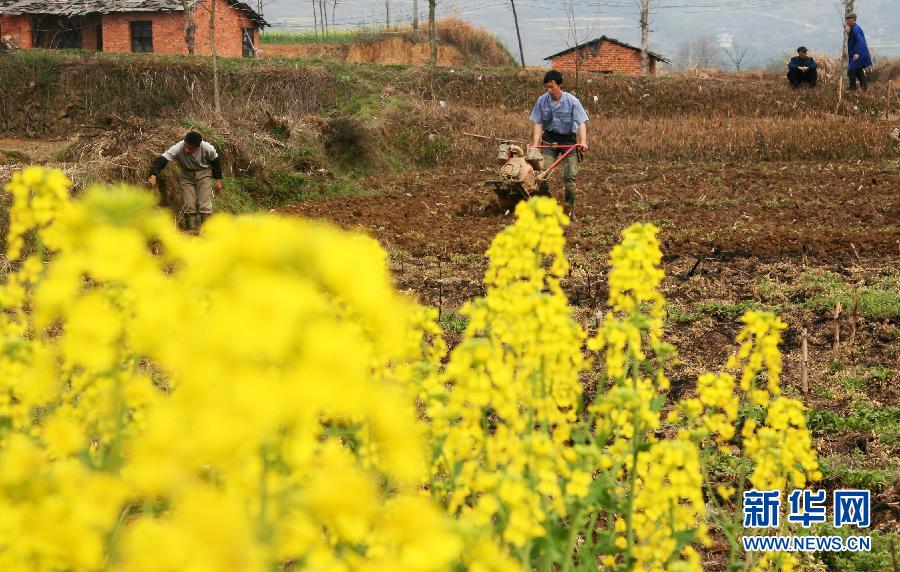 3月7日,湖南省邵阳县下花桥镇石联村村民在耕田备耕。早春时节,气温逐渐回暖。各地农民抢抓农时全力投入春耕备耕生产,田间地头处处一派繁忙景象。 新华社发(李爱民 摄)
