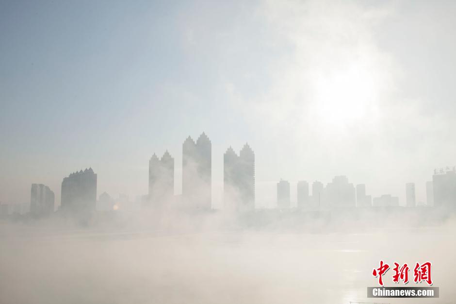 3月11日,吉林省吉林市松花江大雾蒸腾,两岸建筑时隐时现,人们在江边雾中行走。当日,吉林市松花江上水雾蒸腾,呈现雾海景观,两岸建筑在大雾中若隐若现,如同海市蜃楼。 中新社发 朱万昌 摄 图片来源:CNSPHOTO
