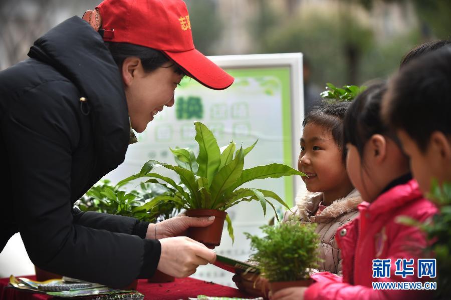 植树节将至,安徽合肥市瑶海区明光路街道金大塘社区举办“书香传递,‘筷’乐行动”主题活动。社区孩子和居民用自己闲置的旧图书置换绿植小盆栽和餐具套装,倡导绿色生活,拒绝一次性餐筷。通过置换活动让“书香”在社区传递,孩子们通过自己亲手养护绿植,从小培养他们爱护环境,保护绿色的环保意识,让绿色低碳生活伴随自己成长。新华社发(解琛 摄)