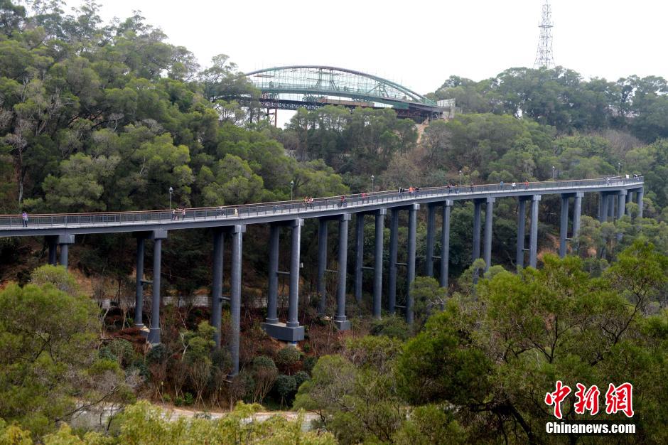 3月12日,福州市民在金鸡山公园高空揽城栈道上锻炼、游览城市景观。 中新社发 王东明 摄