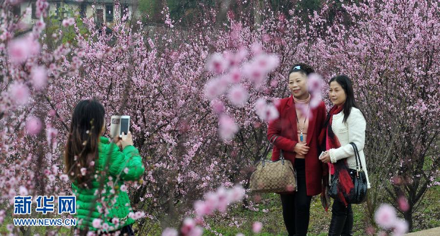 3月12日,长沙市民在湖南省园艺研究所科研基地内踏春赏花。近日,在湖南省园艺研究所科研基地内,占地逾30亩的近2000株美人梅纷纷盛开,引得不少长沙市民前来踏春赏花。美人梅的花期在梅花中算较晚的,大约在2月底到3月初,花期一般在15到20天。盛放期的植株花朵繁密,叶子却很少。 新华社记者 龙弘涛 摄
