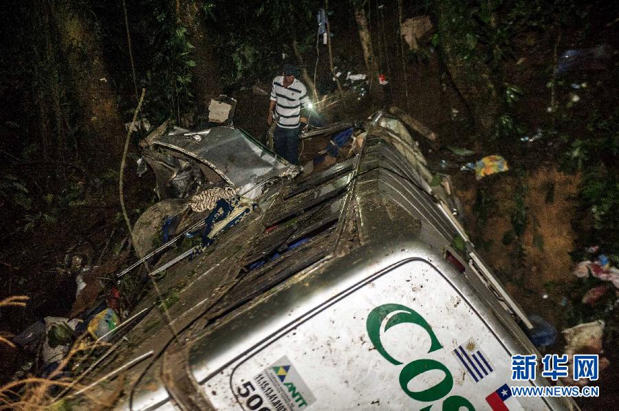 3月15日,在巴西圣卡塔琳娜州坎普阿莱格里,救援人员在事故现场搜救。据巴西媒体报道,发生在巴西南部圣卡塔琳娜州的旅游巴士坠落河谷事故致死人数上升至49人。 新华社发