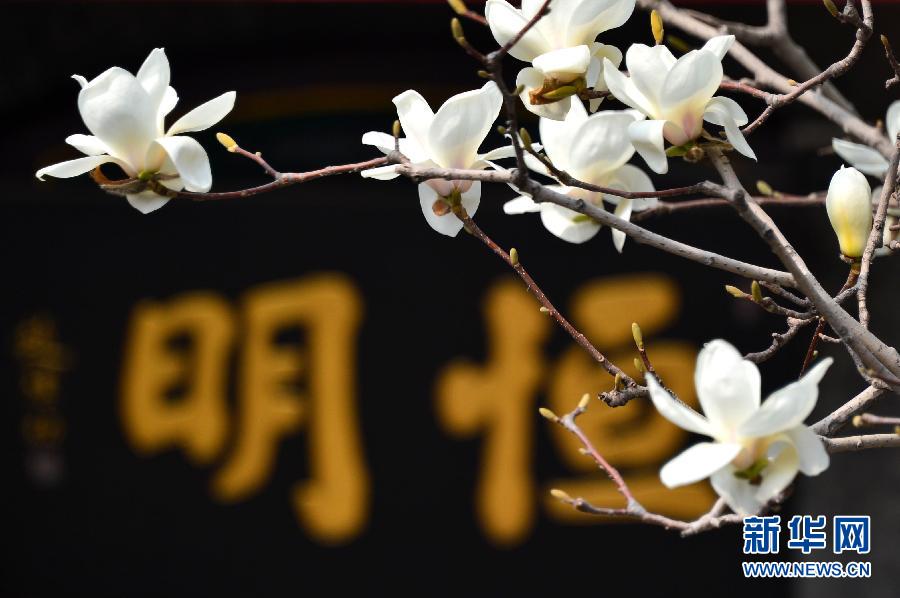 近日,随着天气转暖,济南趵突泉公园里玉兰花相继盛开,成为泉城一道美丽的风景。 新华社记者 郭绪雷 摄