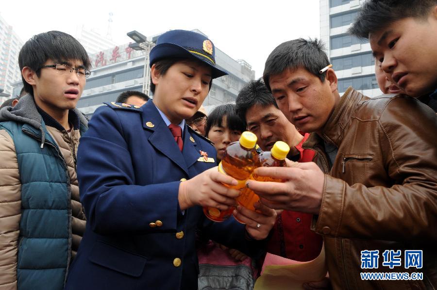 3月15日,工作人员在郑州火车站向旅客讲解真假饮品的鉴别方法。当日是“3·15”国际消费者权益日。全国各地纷纷举行各式相关活动,向广大消费者宣传法律知识和鉴别假冒伪劣产品知识,提供咨询和投诉服务,依法保护消费者的正当权益。新华社记者 朱祥 摄