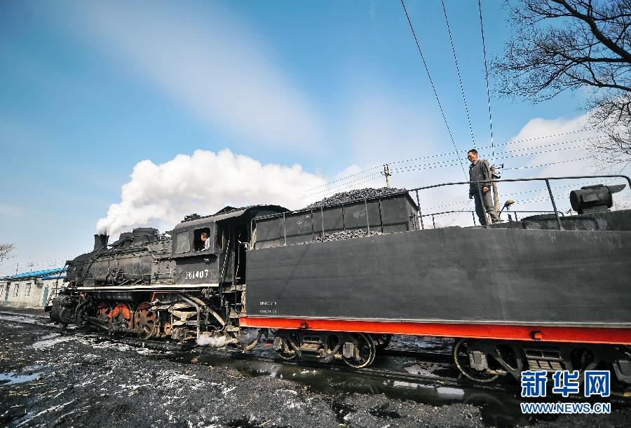 “上游1407”号在执行运载任务,前往厂区拉载煤炭(3月13日摄)。在吉林宇光能源公司院内,有一辆有着30年历史的老式蒸汽火车,标志性的圆车头、长烟筒、宽大的车轮,仿佛把人带回了那个属于蒸汽火车的年代。蒸汽火车是第一次工业革命的产物,随着时代发展,如今,蒸汽火车已不能出现在公共铁路轨道上,只能在专线轨道上运行。据介绍,这辆蒸汽火车于1985年生产,被命名为“上游1407”,日常工作是通过专线将煤炭运送至附近火车站转运,全程长约4公里。 “上游1407”号的车长郭金津驾驶这辆火车20多年,对这辆火车有着深厚的感情,本已退休的他又在公司的返聘下重操旧业,继续陪伴他心中特殊的“伙伴”。郭金津告诉记者,蒸汽火车的“寿命”一般不到40年,所以这辆车已到了它最后的“时光”。 “80年代末期蒸汽火车便停产了,这也算是我国最后一批仍在运行的蒸汽火车。它是我的老朋友,装载了我太多的回忆,能陪伴它走完最后的旅程,我也没有什么遗憾了。” 新华社记者许畅摄