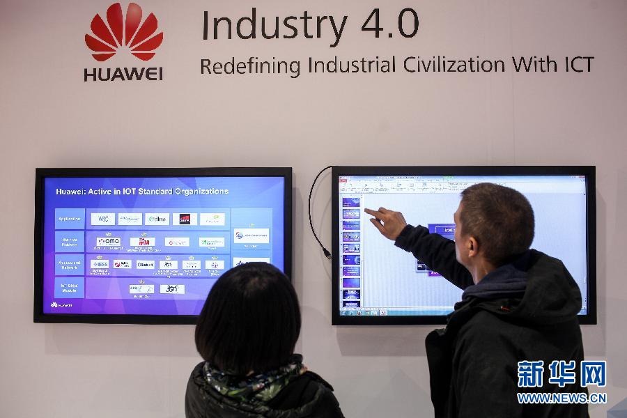 3月14日,在德国汉诺威,两名工作人员在华为公司展台准备。 2015年德国汉诺威消费电子、信息及通信博览会(简称汉诺威IT展)将于3月16日至3月20日举行。作为本届汉诺威IT展的合作伙伴国,参展的近600家中国企业将带来国内最先进的技术和创新产品,展示“中国创造”的最新水平。汉诺威IT展是全球IT行业领军展会,本届展会以“数字经济”为主题。新华社记者张帆摄