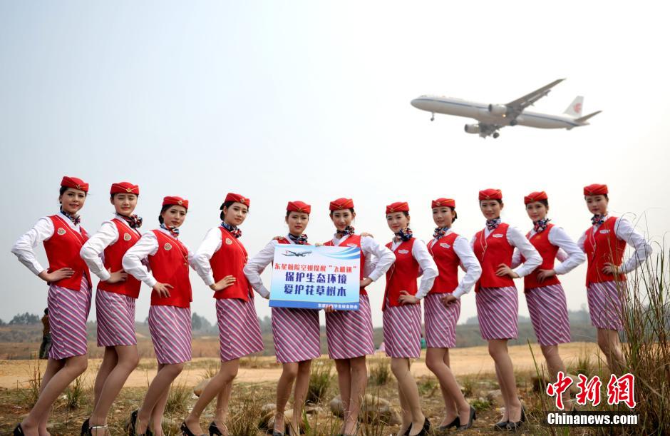 3月14日,成都准空姐提醒民众看飞机注意安全。当日,成都双流县云华村境内,一群来自成都东星航空专修学院的准空姐志愿者们时刻提醒民众欣赏飞机不要乱停车,不要乱扔垃圾,保护环境。据悉,随着桃花、油菜花的竞相开放,晒太阳、赏花、看飞机已成为成都一道风景。中新社发 刘忠俊 摄