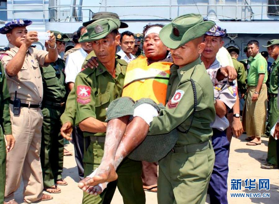 3月14日,在缅甸西部若开邦,工作人员在现场展开救援。当日,缅甸宣传部网站证实,西部若开邦从皎漂港开往实兑港的“昂达贡”号渡轮13日晚在行驶途中倾覆。这起事故已造成至少21人死亡、47人失踪。新华社/缅通社