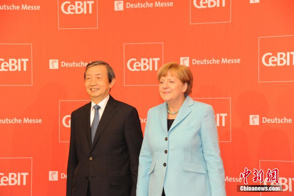 汉诺威消费电子、信息及通信博览会(简称CeBIT)3月15日晚由德国总理默克尔揭幕。作为官方合作伙伴国代表,中国国务院副总理马凯出席了开幕式并发表致辞。中新社发 黄霜红 摄