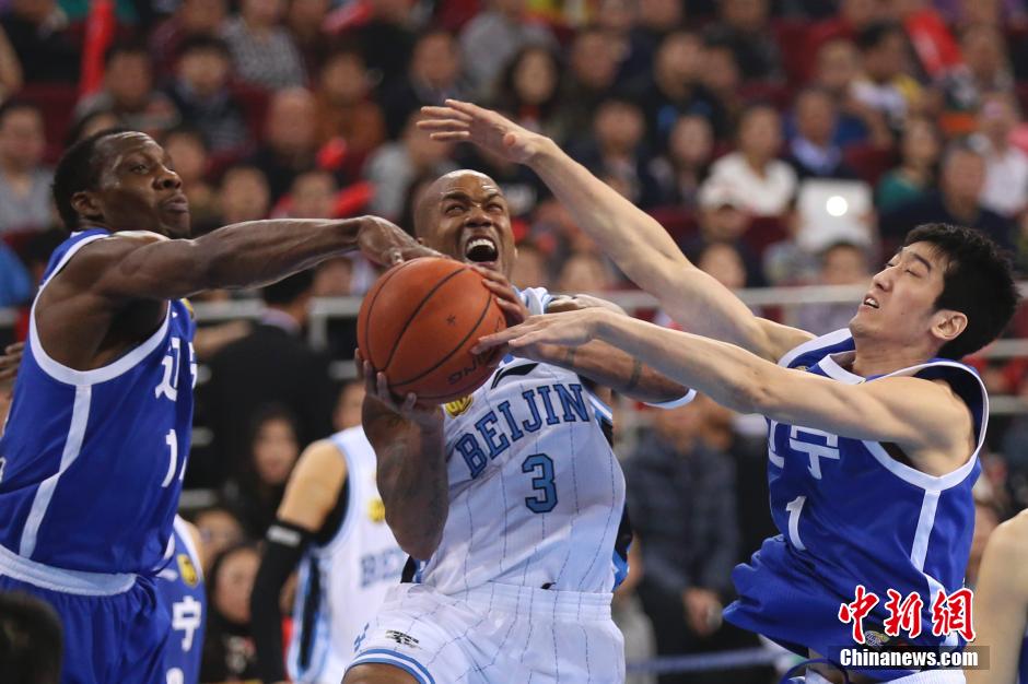 3月15日,北京首钢队球员马布里在比赛中上篮。当日,在2014-2015赛季中国男子篮球职业联赛(CBA)总决赛第三场的比赛中,北京首钢队主场以108比109负于辽宁药都本溪队。 中新社发 熊然 摄