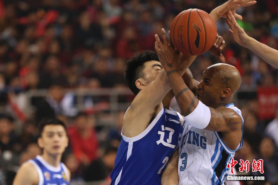 3月15日,2014-2015赛季中国男子篮球职业联赛(CBA)总决赛第三场的比赛中,北京首钢队主场以108比109负于辽宁药都本溪队。 中新社发 熊然 摄