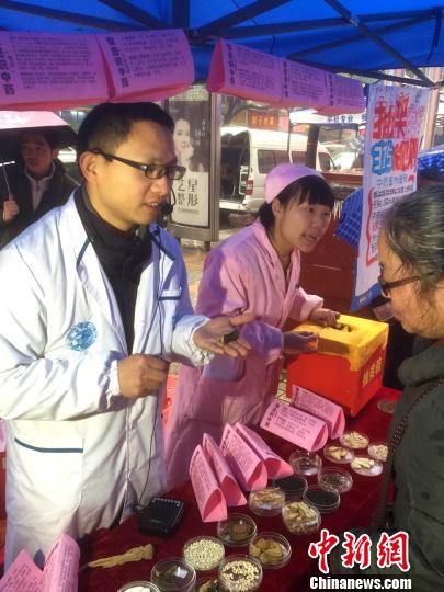 图为一职业药师在为老百姓讲授辨别中药材真伪的知识。 向一鹏 摄