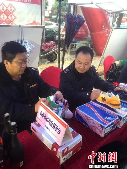 图为长沙市工商局工作人员在对假冒伪劣产品进行鉴别。 向一鹏 摄