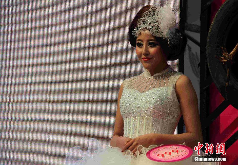 3月14日开幕的西安春季婚博会上,婚庆行业的商家纷纷推出“婚纱秀”,模特身着婚纱的种类从“中国风”到“西洋款”甚至“军装范儿”不一而足,抢尽游人眼球。图为西安婚博会现场的模特秀。张一辰 摄