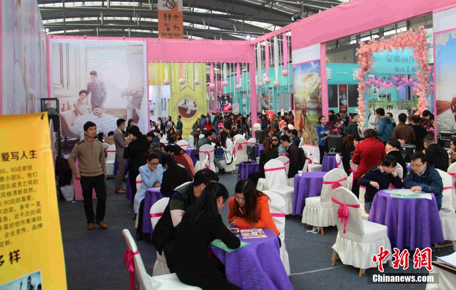 3月14日开幕的西安春季婚博会上,婚庆行业的商家纷纷推出“婚纱秀”,模特身着婚纱的种类从“中国风”到“西洋款”甚至“军装范儿”不一而足,抢尽游人眼球。图为西安婚博会现场的模特秀。张一辰 摄