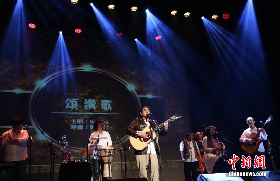 3月13日,台湾人民文化协会在台北举办“璀璨经典音乐会”。成员包括卑南人、泰雅人、排湾人等台湾少数民族的飞鱼云豹音乐工团,演唱了宝岛部落流行歌曲;来自北京的“小娟&山谷里的居民”乐队则献上多首大陆民歌。两岸歌手还共同演绎了台湾少数民族经典歌曲。 中新社发 陈小愿 摄