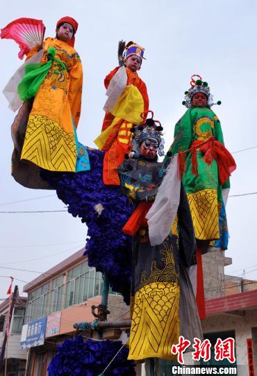 3月3日,农历正月十三,地处甘肃南部的礼县盐官镇群众举办喜迎元宵佳节民间社火表演,来自周边乡村的表演团队载歌载舞,以传统民俗社火“高台”、“马社火”为主和“扭秧歌”、“广场舞”等文艺节目,为群众送上丰富