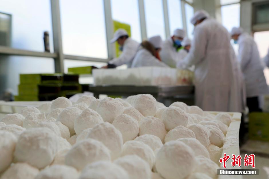 3月4日,随着元宵节临近,北京老字号小吃的元宵销售火爆,市民大排长龙等待购买,厨师在店里加紧加工包装。中新社发 李慧思 摄