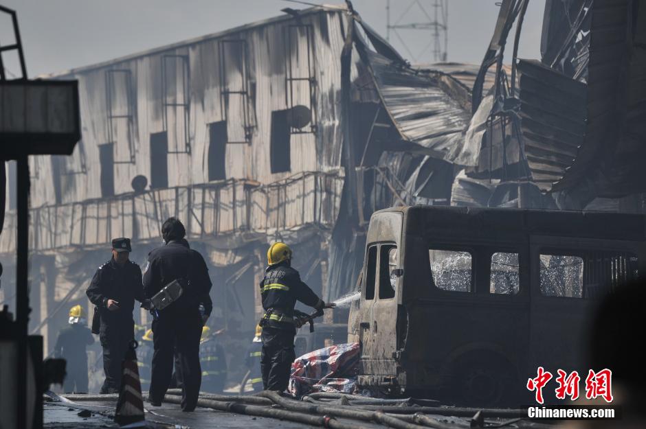3月4日4时38分,昆明东盟联丰农产品商贸中心发生火灾,经初步查勘,火灾造成9人死亡,10人受伤,50余间商铺被烧毁。经全力扑救,现火灾已扑灭。图为消防人员在现场扑救。 中新社发 任东 摄