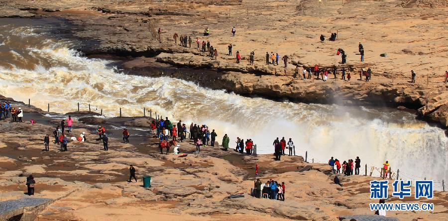 3月3日,游人在壶口瀑布景区游览。随着气温的逐渐升高,陕晋交界的壶口瀑布冰雪逐渐消融。入春以来,壶口瀑布景区每天的游人均在千人以上,迎来旅游旺季。 新华社发(束健摄)图片来源:新华网