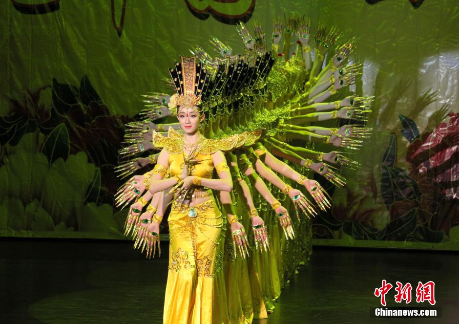 图为中央民族歌舞团表演舞蹈《千手观音》。中新社发 周兆军 摄