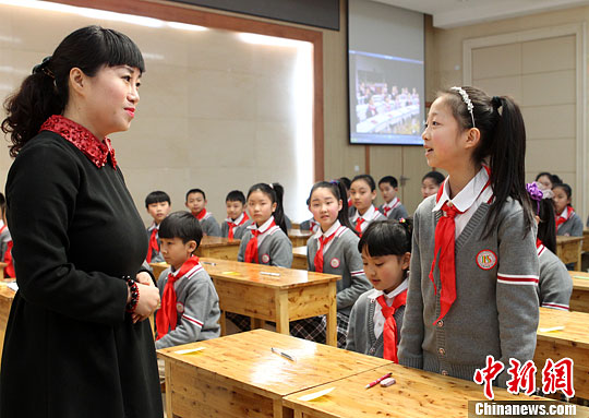 图为一名学生与老师和同学一起分享日常生活中怎样用学到的法律知识保护自己。中新社发 周毅 摄