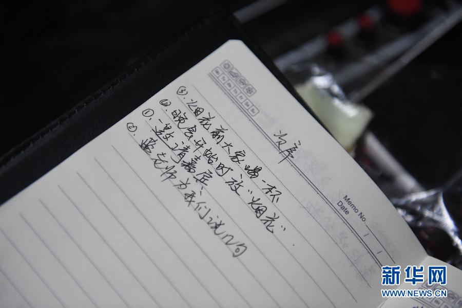 2月14日拍摄的蒙宣友为板升乡弄顶屯春晚准备的节目单。 新华社记者 张爱林 摄
