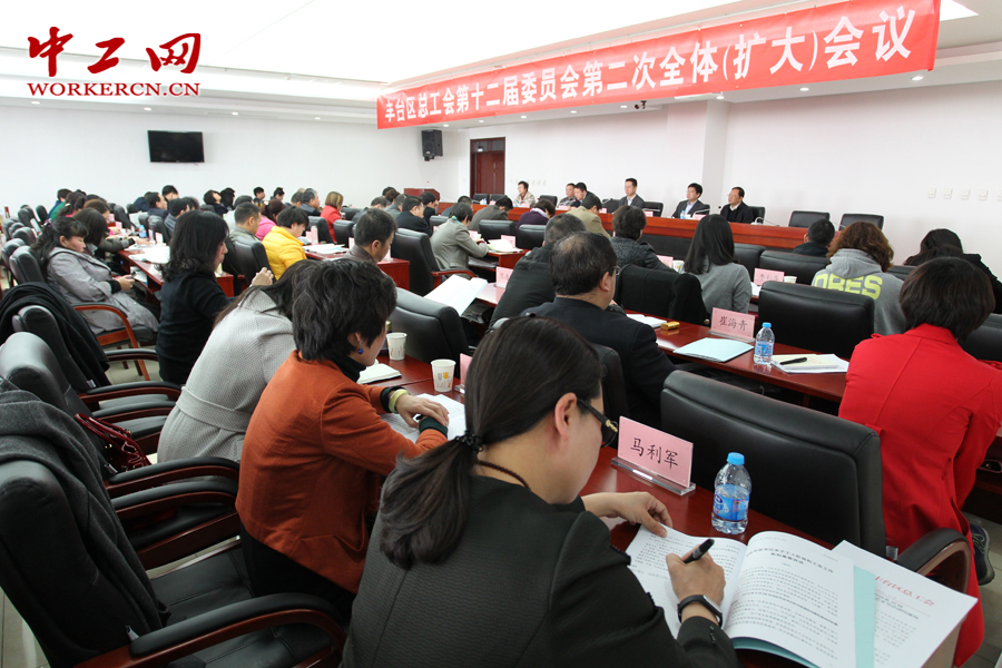 3月24日,丰台区总工会第十二届委员第二次全体(扩大)会议在双拥大厦举行。北京市总工会党组成员、副主席王永浩、丰台区委常委、组织部部长霍连明、丰台区政府副区长高峰等领导出席本次会议。会议由丰台区总工会党组书记、主席王建斌主持。丰台区总工会第十二届委员会委员、经费审查委员会委员、第五届女职工委员会委员以及全区各直属基层工会主席、副主席共计约180人参加了本次会议。图为丰台区总工会召开第十二届委员会第二次全体(扩大)会议现场。