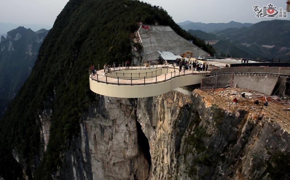 陡峭的山顶崖壁上,工人们硬生生敲出了一块数百平米的开阔平台,结合现代化的工艺,用钢筋水泥浇筑成一朵线条感十足的“悬崖之花”,柔美与刚劲相结合,让人惊叹。华龙网记者 黄宇 李文科 图片来源:华龙网