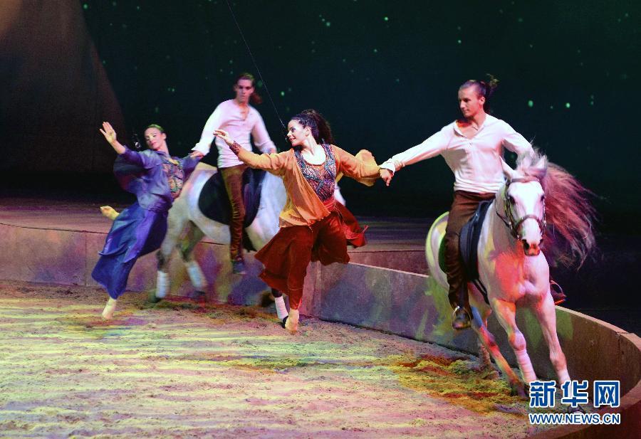这是3月30日在香港拍摄的《卡瓦利亚》预演现场。3月30日,来自加拿大的大型多媒体舞台剧《卡瓦利亚》(Cavalia)在香港中环新海滨活动空间举行预演。正式演出将于3月31日至5月10日举行。在35米高的巨型白色马戏棚内,来自世界各地的40匹骏马,以及多位骑师、杂技表演者和音乐家等,为观众献上一幕视觉盛宴。新华社记者 秦晴 摄 图片来源:新华网