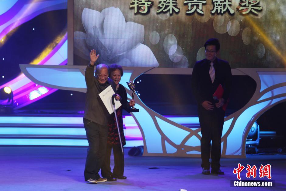 3月31日晚,第25届上海白玉兰戏剧表演艺术奖在上海大剧院颁奖。85岁的戏曲导演、上海京剧院国家一级导演马科获白玉兰特殊贡献奖,这也是白玉兰第一次将特设大奖颁给导演艺术家。马科曾导演了几十部戏曲大戏,尤其是他导演的《曹操与杨修》被业界认为既是现实主义的,又是传统写意的,是将两者融为一体的“新时期中里程碑式的京剧作品”。 中新社发 张亨伟 摄