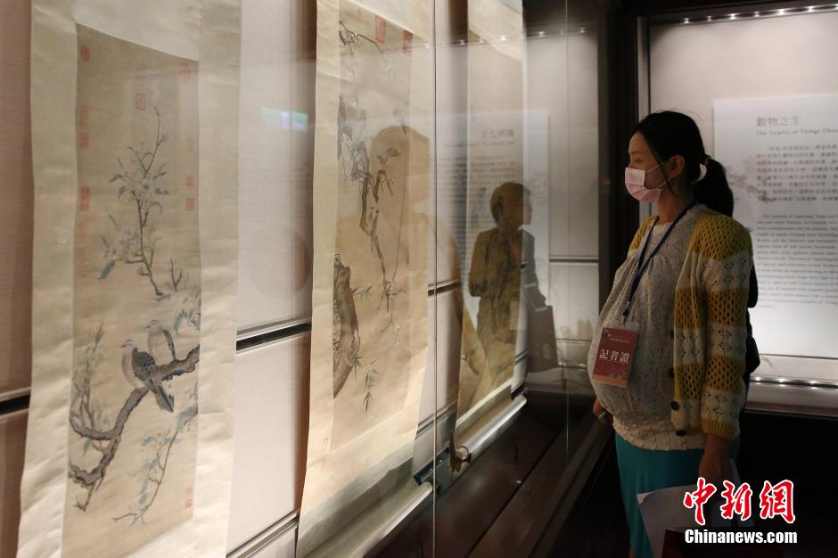 4月1日,台北故宫博物院内,一位记者在欣赏“十指春风——缂绣与绘画的花鸟世界”特展。该展以“观物之生”、“装饰之美”、“构物之趣”、“寓兴之意”与“技艺之妙”等五单元,呈现宋代至清朝跨越千年的花鸟艺术创作世界。3月31日起,台北故宫连续推出“皇帝的镜子——清宫镜鉴文化与典藏”、“十指春风——缂绣与绘画的花鸟世界”、“毫素风采——明末清初的女性绘画”等三个特展,吸引媒体与民众关注。中新社发 陈小愿 摄