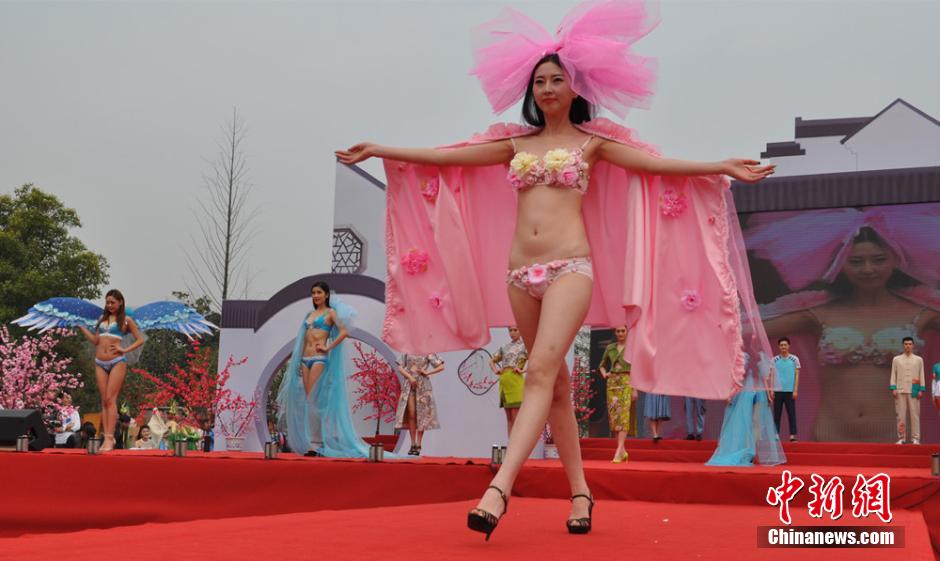 无锡阳山办桃花节迎客 比基尼美女助阵