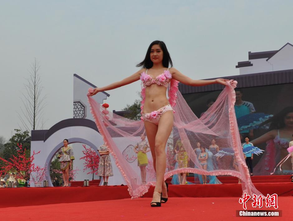 无锡阳山办桃花节迎客 比基尼美女助阵
