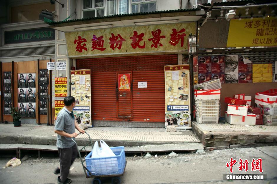 4月1日,在香港有百年历史的嘉咸露天市集现场所见,不少受影响的干货商铺已落闸迁出,门口贴着“受重建计划影响,本店已光荣结业”等告示。但亦有不少商户仍然营业,希望可在月底前将货品卖出。在香港市区重建局的重建计划下,市建局的嘉咸街和卑利街重建项目,涉及37幢分别坐落于嘉咸街和卑利街,以及毗邻的结志街、威灵顿街和吉士笠街等的旧楼。中新社发 洪少葵 摄