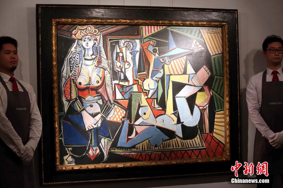 4月1日,佳士得拍卖行向香港媒体展示毕加索巨作《阿尔及尔的女人(“O”版本)》。这件画面恢弘且色调鲜明的作品估价约11亿港元(约8.8亿元人民币)。据悉,该画作是毕加索于1954至1955年系列中完成,也是毕加索创新的一种奇异风格。这幅巨作将于5月12日在纽约佳士得拍卖。中新社发 洪少葵 摄