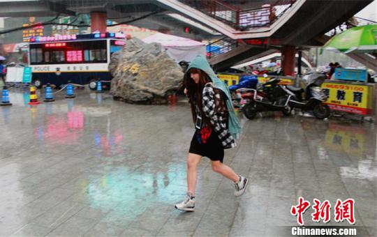 陕西发布大风暴雨预警 街头上演“雨中情”