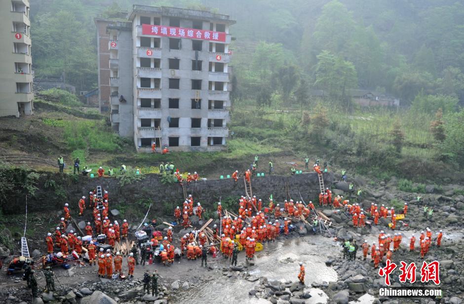 图为参训的消防官兵正在通过河道以及河提等障碍前往垮塌现场营救。 刘忠俊 摄