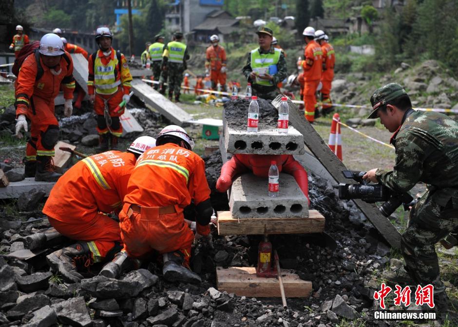图为参训消防官兵正在进行垮塌现场综合救援演练。 刘忠俊 摄