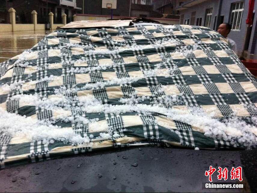 4月1日下午4时许,四川万源草坝镇、八台乡、井溪乡等地遭遇大雨冰雹袭击。大雨和冰雹造成草坝镇学校围墙被冲垮、食堂库房被淹,据当地居民介绍,冰雹持续半小时左右,大雨则一直降到当日深夜。图为万源市井溪乡冰雹。 易平 摄