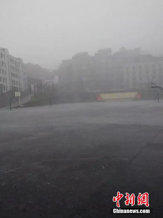 图为万源市草坝场镇大雨。 袁军 摄