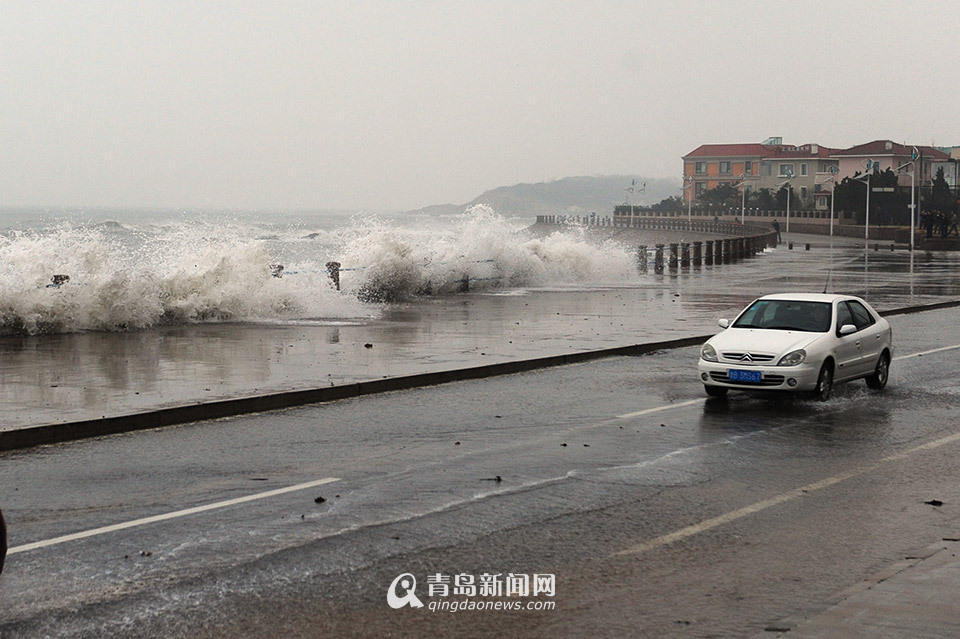 青岛澳门路附近海域掀起大浪。任俊峰 孙志文/摄