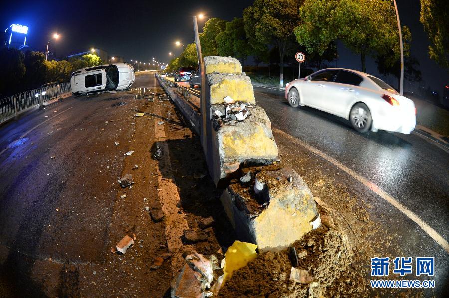 4月4日凌晨,湖南长沙市潇湘大道望月湖高架桥匝道入口,一辆小车撞上隔离墩后失控侧翻在路中央,所幸没有人员伤亡。据了解,事发路段因为望月湖高架桥分岔口隔离墩警示标志不明显多次发生交通事故。当地交警再次提醒司机,夜间驾驶要严格控制车速,并注意观察路上动态。新华社记者龙弘涛摄