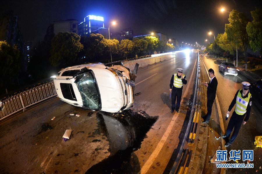 4月4日,交警在事故现场进行处理。新华社记者龙弘涛摄