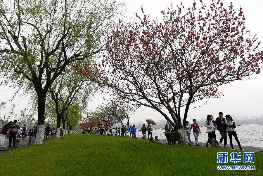 4月4日,游客在杭州西湖边漫步。 新华社记者韩传号 摄