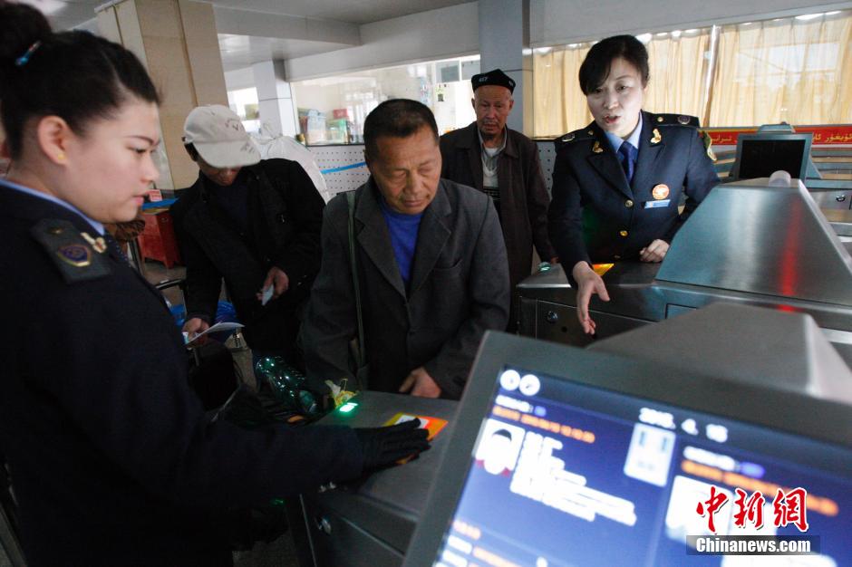 图为工作人员向乘客介绍该系统的使用方法。 中新社发 王小军 摄